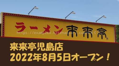来来亭が児島にやってくるみたいです!場所は、「岡山県倉敷市児島元浜町117−5 付近」となっています。 (引用:店舗検索|ラーメン・飲茶の来来亭 ) こちらかと思われます。現在、建物の工事中かと思いますが、現地の方よかったら教えてください!場所…