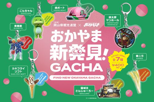 個性豊かな岡山の“アレコレ”がアクリルキーホルダーになって登場!ガチャの「おかやま新発見!GACHA」が販売されています。 プレスリリースより カプセルの中身は全7種類。おかやま新発見!GACHA(魚拓)(Wayback Machine)①桃太郎マンホール ②猫城主さんじ…