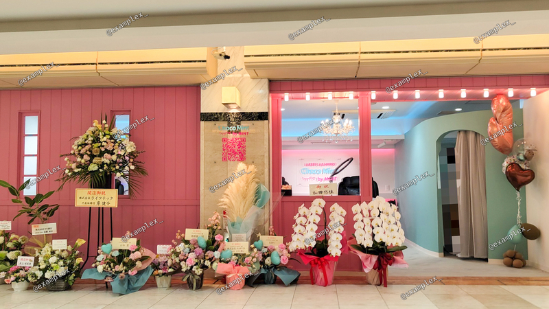 開店祝いの花が沢山あります。