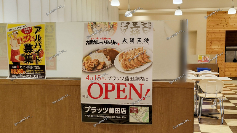 リョービプラッツ 藤田店 のフードコートに、大阪王将 プラッツ藤田店がオープン間近です!